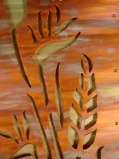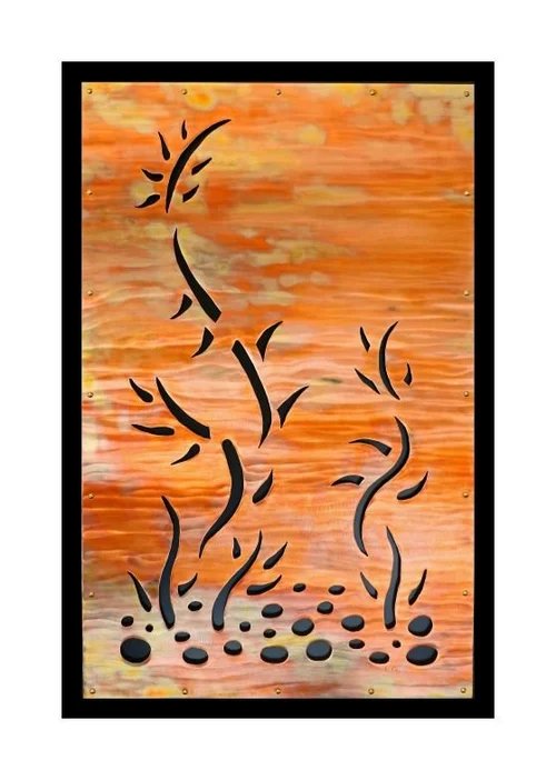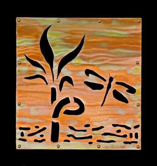 My metal sculptures are unique interpretations of our natural environment imbedding powerful textures and iridescent colors into the reflective metal surface. I design and create in copper, brass, aluminum and steel. These sculptures synthesize the beauty of nature and the architectural use of metals into radiant works of art. As the patterns of illumination vary within the setting, the warm reflective metals come alive as they respond through changes in color and texture.